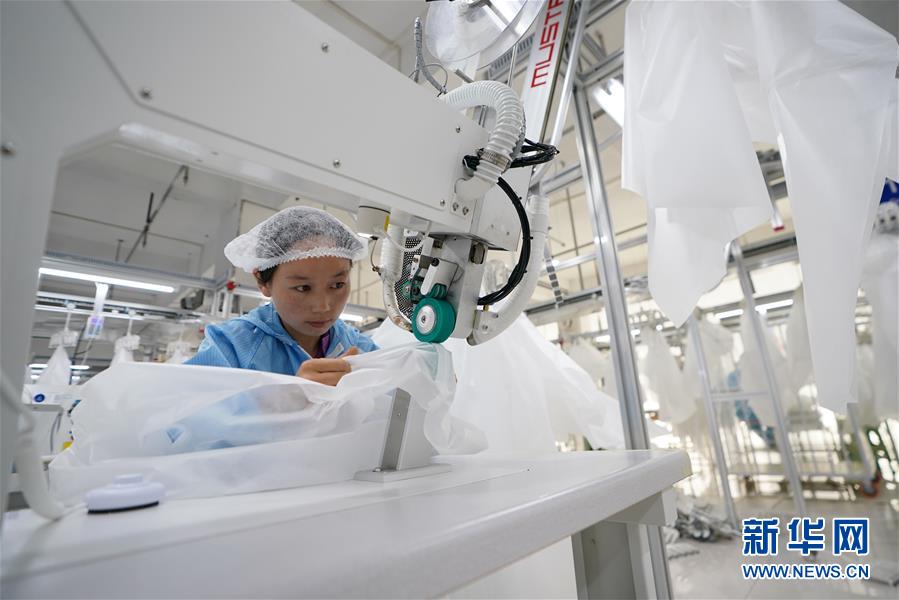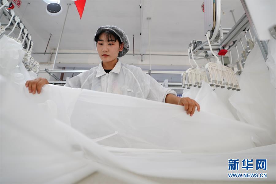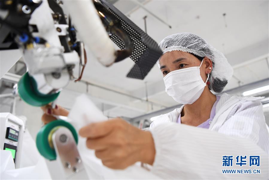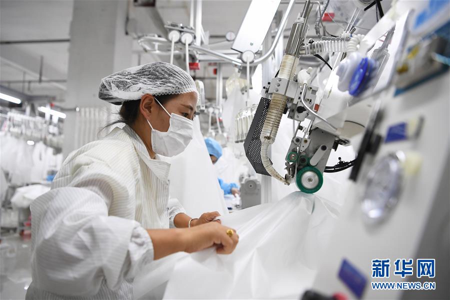 8月9日,甘肅拓奇扶貧車(chē)間的員工在服裝加工生產(chǎn)線(xiàn)上作業(yè)。甘肅拓奇扶貧車(chē)間位于甘肅省臨夏回族自治州積石山縣,是依托東西部扶貧協(xié)作平臺(tái)引進(jìn)的服裝加工企業(yè)。扶貧車(chē)間建成投產(chǎn)以來(lái)帶動(dòng)就業(yè)近300人,其中吸納建檔立卡貧困戶(hù)就業(yè)110人,實(shí)現(xiàn)了貧困群眾就地就近就業(yè)增收的目的,為助推當(dāng)?shù)孛撠毠?jiān)及縣域經(jīng)濟(jì)發(fā)展發(fā)揮了重要作用。新華社記者邢廣利攝。