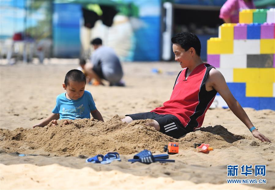 8月9日,市民在南宮五洲植物樂(lè)園戶外戲水區(qū)旁的沙灘上玩沙子。近期,在做好新冠肺炎疫情防控的前提下,位于北京市豐臺(tái)區(qū)的南宮五洲植物樂(lè)園戶外戲水區(qū)對(duì)外開放。市民在戲水的同時(shí)還可以在沙灘上畫沙畫、在新游樂(lè)項(xiàng)目“叢林網(wǎng)繩”里穿梭跳躍,豐富暑期生活。新華社記者任超攝。