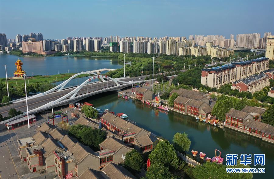 8月9日拍攝的唐山市豐南區(qū)唐津運河景色(無人機照片)。近年來,河北省唐山市豐南區(qū)全力推動“全域治水、清水潤城”工程,形成了以唐津運河、人民公園生態(tài)廊道等以健身、休閑、旅游功能于一體的人水相親、城水相依的景觀環(huán)境,為綠色發(fā)展注入活力。新華社記者楊世堯攝。