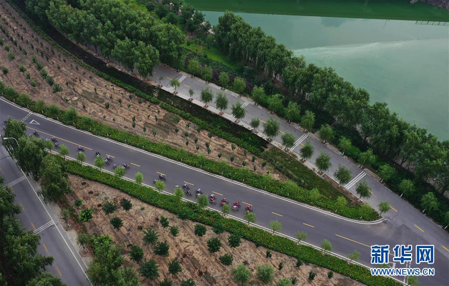 自行車愛好者在唐山市豐南區(qū)唐津運河景觀大道騎行(7月31日攝,無人機照片)。近年來,河北省唐山市豐南區(qū)全力推動“全域治水、清水潤城”工程,形成了以唐津運河、人民公園生態(tài)廊道等以健身、休閑、旅游功能于一體的人水相親、城水相依的景觀環(huán)境,為綠色發(fā)展注入活力。新華社記者楊世堯攝。