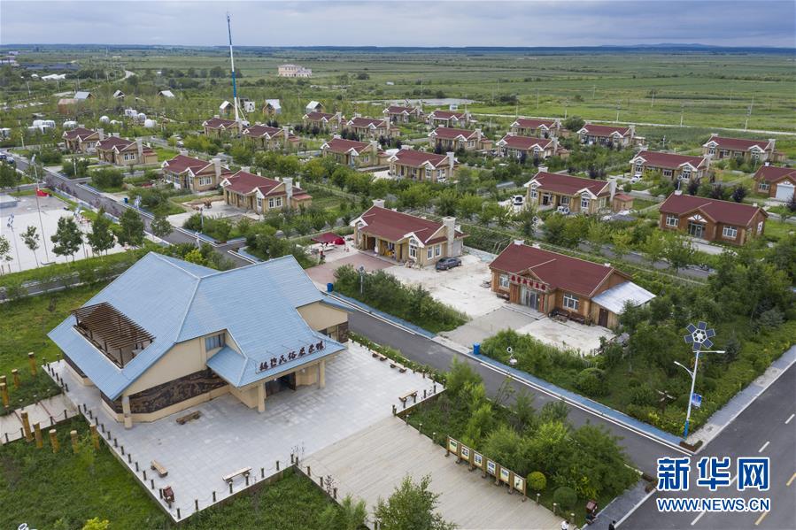 這是8月9日拍攝的抓吉赫哲族村(無人機(jī)照片)。抓吉赫哲族村面積1.3平方公里,是赫哲族“三鄉(xiāng)五村”聚居地之一。近年來,抓吉赫哲族村在撫遠(yuǎn)市“烏蘇里船歌風(fēng)光帶”框架下,大力發(fā)展民俗文化旅游產(chǎn)業(yè)。新華社記者謝劍飛攝。