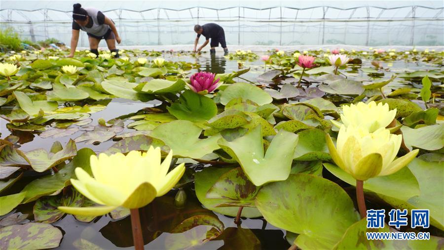 8月12日,河北省灤州市茨榆坨鎮(zhèn)草塘坨村花農(nóng)在大棚內(nèi)打理種植的蓮花。近年來,河北省灤州市茨榆坨鎮(zhèn)結(jié)合市場需求,引導(dǎo)農(nóng)民發(fā)展玫瑰、蓮花等花卉規(guī)?;N植,通過“線上”和“線下”相結(jié)合的銷售模式,進入北京、天津等地花卉市場,在扮靚城鄉(xiāng)的同時為種植戶帶來良好收益。新華社記者 牟宇 攝