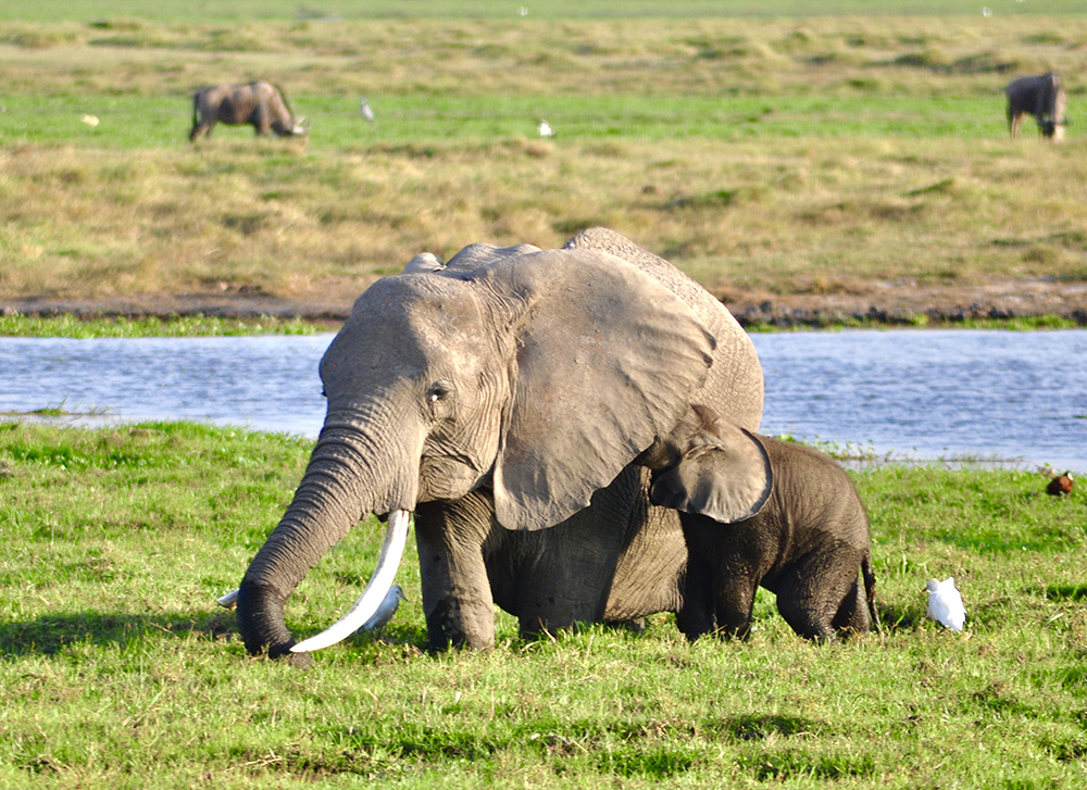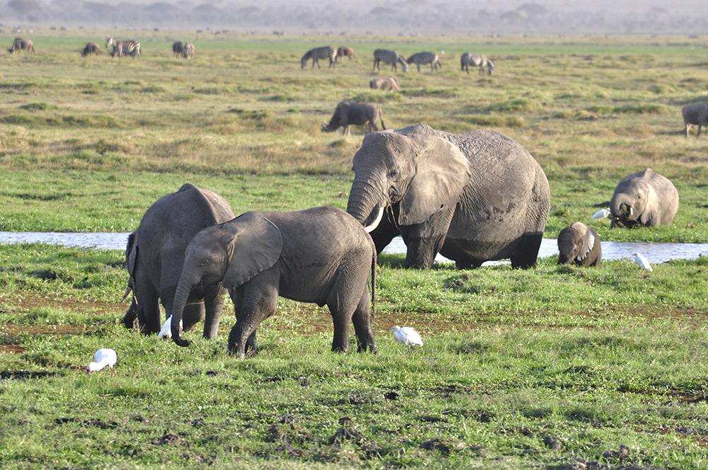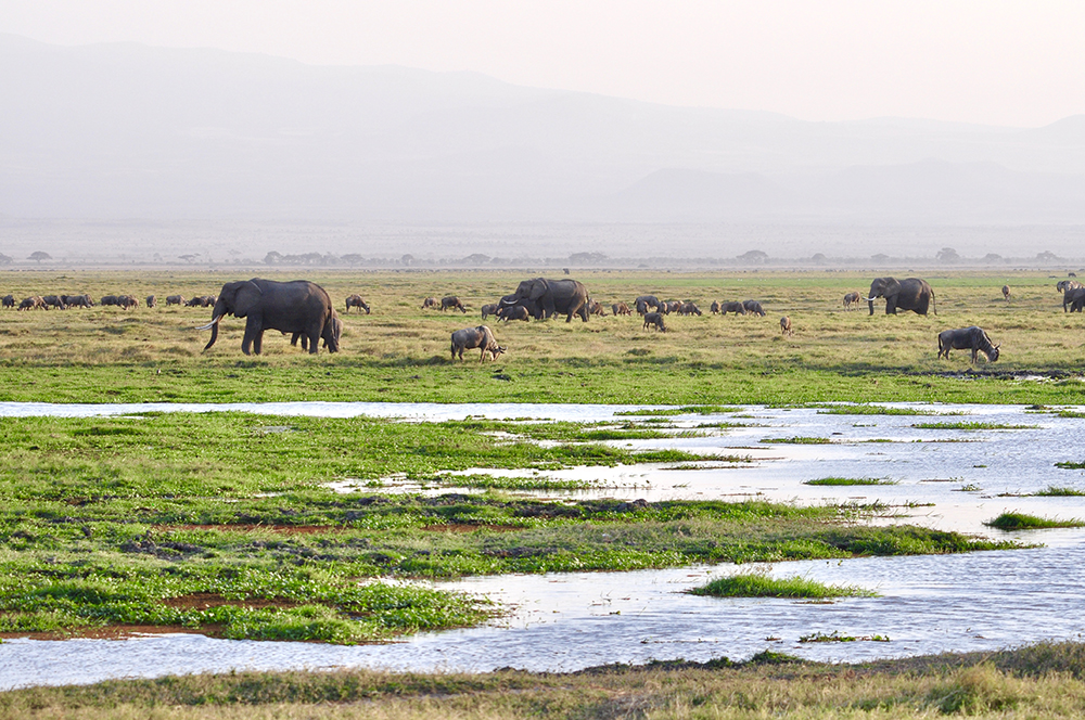 肯尼亞東南部,與坦桑尼亞接壤的安博賽利國(guó)家公園,距內(nèi)羅畢240公里,因水草豐美而成為野生非洲大象的樂園。