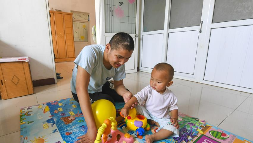 6月27日,河北省故城縣故城鎮(zhèn)周莊村已脫貧的建檔立卡貧困戶趙聯(lián)利的兩個(gè)孩子在改造后的房屋內(nèi)玩耍。