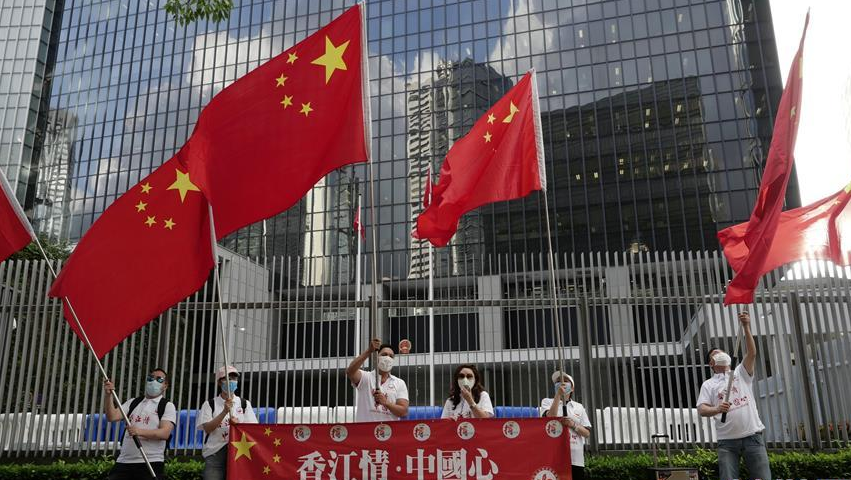 香港市民慶祝香港特區(qū)立法會三讀通過《國歌條例草案》