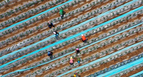 5月28日,內(nèi)蒙古巴彥淖爾市臨河區(qū)新華鎮(zhèn)新樂村村民在田間勞作。