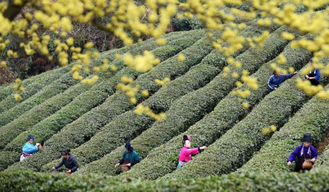 近日,隨著氣溫回升,貴州省黔東南苗族侗族自治州丹寨縣“扶貧茶園”的春茶陸續(xù)進入采摘期。