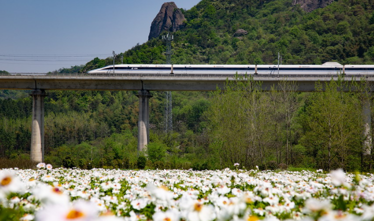 隨著氣溫回升,安徽省銅陵市境內(nèi)的鳳丹競相綻放,高鐵列車穿行其間,成為春日里一道美麗的風景線。