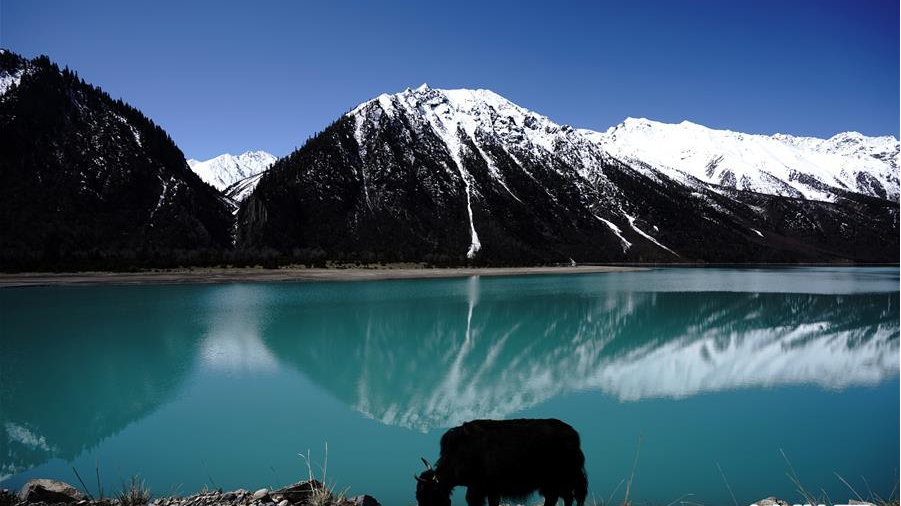 然烏湖位于西藏八宿縣境內,湖水與雪山、藍天相互映襯,景色如畫。