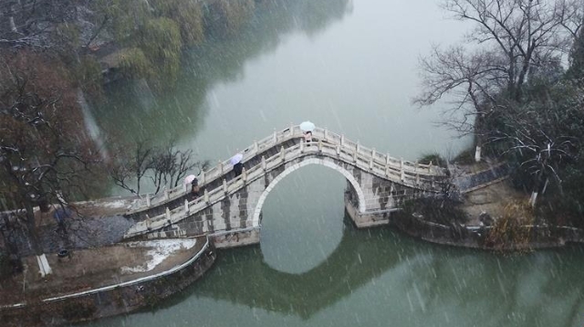 1月15日,安徽省合肥市迎來(lái)降雪天氣。雪中的合肥市包公園景色別致。