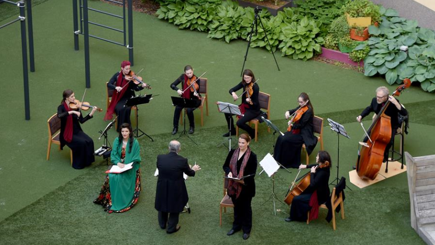 5月30日,奧地利首都維也納的一家名為“時代精神”的酒店為迎接“解封”后恢復營業(yè),在其庭院內舉辦“窗口音樂會”。
