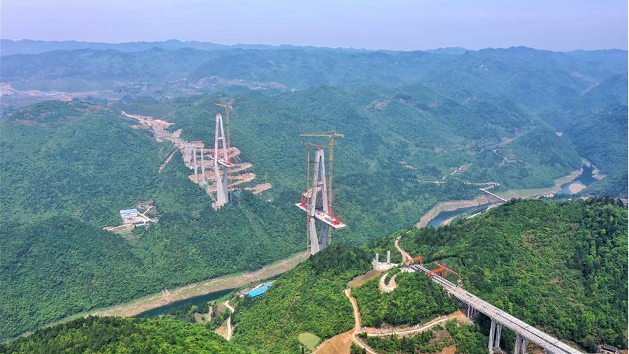 近日,由中鐵廣州局承建的貴州遵余高速湘江大橋工程在做好疫情防控的同時,全力恢復生產建設。目前工程進展順利,正在進行主橋鋼梁架設,預計將于8月底合龍。