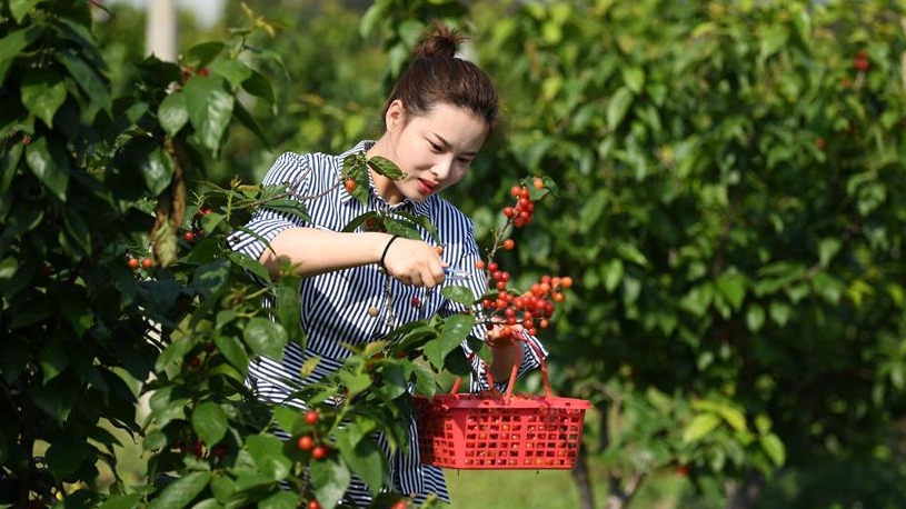 近日,安徽省肥西縣豐樂鎮(zhèn)鳳嶺苗木種植扶貧產業(yè)園里10多畝櫻桃進入采摘期,農民忙著采摘櫻桃,供應市場。