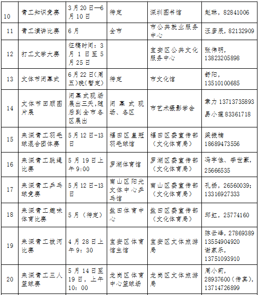 深圳市第十四屆外來(lái)青工文體節(jié)即將舉行 25項(xiàng)文體活動(dòng)等你報(bào)名