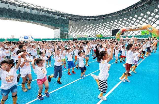 而在環(huán)球足球挑戰(zhàn)環(huán)節(jié),許多小選手是第一次接觸足球。通過數(shù)碼感應(yīng)裝置和小選手們佩戴的智能手環(huán),將帶球、頂球、射門等足球動作實時反饋呈現(xiàn)運(yùn)動結(jié)果,其樂無窮的項目讓孩子們一一挑戰(zhàn)停不下來!