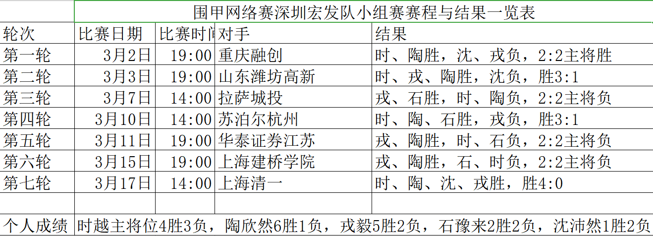 附1:《圍甲網(wǎng)絡賽深圳宏發(fā)隊小組賽賽程與結果一覽表》