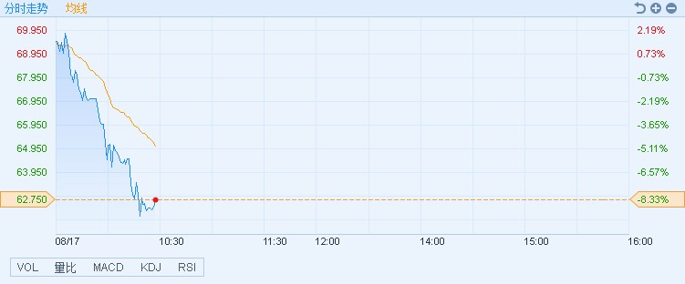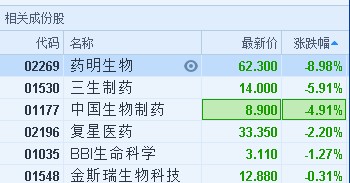 智通財經APP獲悉,受產業(yè)政策影響,醫(yī)藥股普跌,藥明生物(02269)領跌板塊,連續(xù)三個交易日下挫,跌逾兩成。截至10時26分,跌8.33%,報價62.75港元,成交額2.27億。
