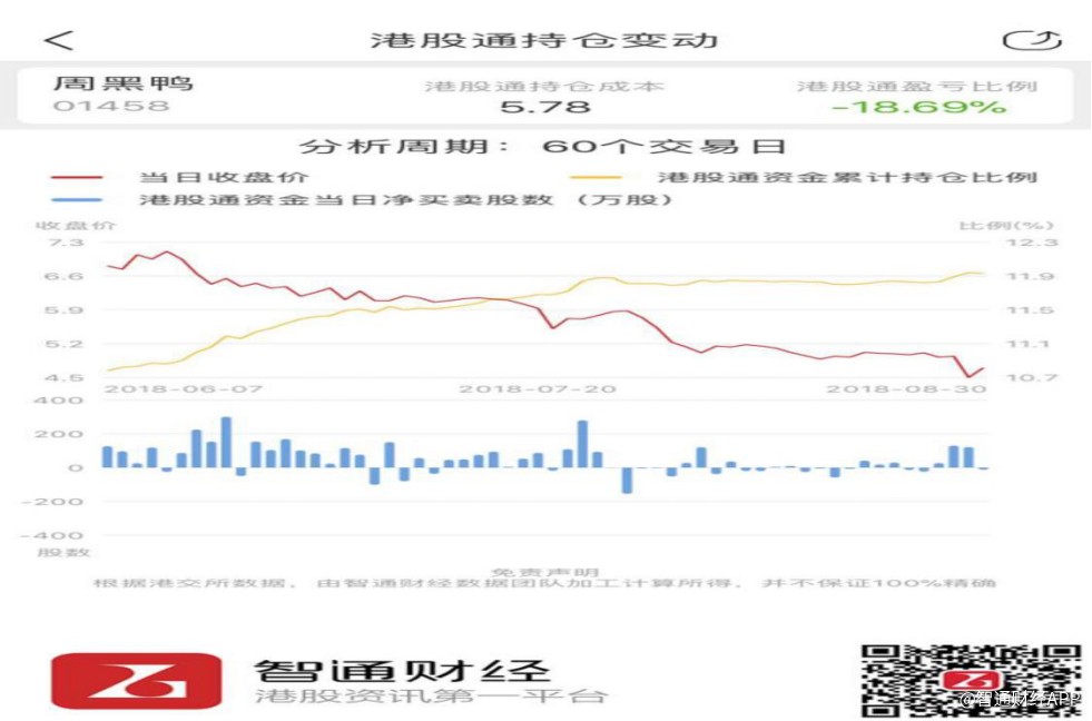 不僅如此,根據(jù)智通財經(jīng)APP的數(shù)據(jù),近三個月以來內(nèi)地資金持續(xù)通過港股通渠道加倉周黑鴨,與公司股價下行趨勢形成明顯的背離。