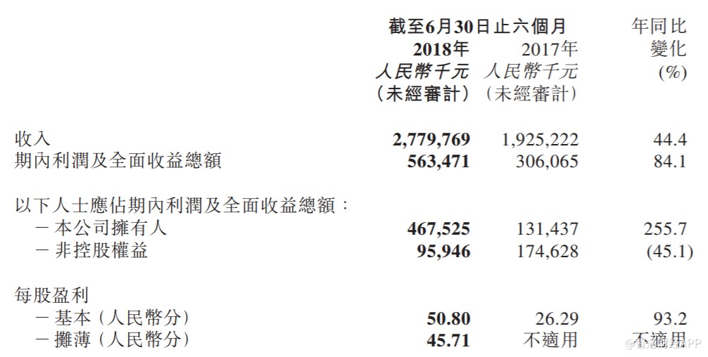 智通財經(jīng)APP了解到,2018年上半年,易居實現(xiàn)收入為27.79億元人民幣(單位下同),同比增長44.4%。期內(nèi)利潤及全面收益總額為5.63億元,同比增長84.1%。公司擁有人應(yīng)占期內(nèi)利潤及全面收益總額為4.68億元,同比增長255.7%。每股基本盈利為50.80分,不派息。