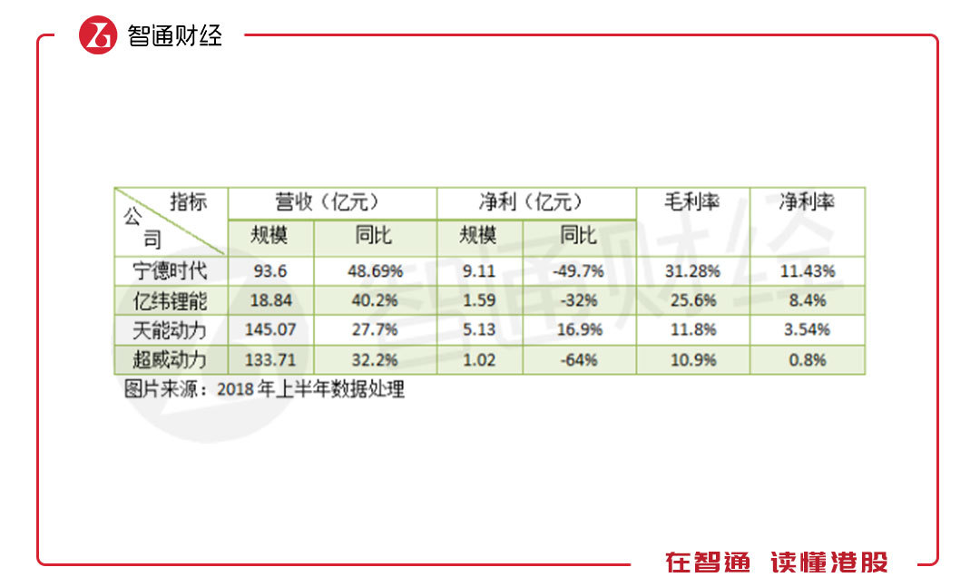 兩大鉛酸電池龍頭天能動力(00819)和超威動力(00951)也在積極轉型生產鋰動力電池,鋰動力電池成為國內未來電池行業(yè)角逐的主要戰(zhàn)場。鋰電池的成長能力及盈利能力要比鉛酸電池高,上半年,由于政策影響,鋰電行業(yè)凈利潤出現下滑較大,但凈利率仍遠高于鉛酸電池。