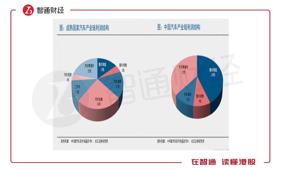 在港股上市公司中,汽車經銷商主要銷售的均為進口豪華車型,比如奧迪、奔馳及寶馬車型,主要還是國內的自主品牌制造商有自己專門的銷售渠道。整體來看,銷售環(huán)節(jié)利潤率一般都不高,凈利率賺個售價的3-5個百分點左右。汽車后市場龐大,但目前市場較為零散,還未形成較大規(guī)模的企業(yè)。