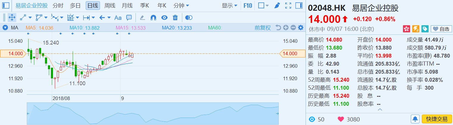 易居是國內(nèi)最大的房地產(chǎn)服務(wù)商,伴隨港股一波熱鬧非凡的上市潮,成立剛滿18年的易居于7月20日風(fēng)風(fēng)火火上市,之后也在新股“破發(fā)潮”中慘遭錯殺,一度下探至11.1港元,但價值總會回歸,隨著易居的商業(yè)模式和業(yè)績被市場認(rèn)可,股價逐步回升。