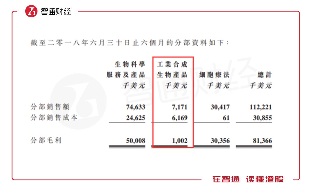 最后落到重點業(yè)務細胞療法(CAR-T),這也是“閻火”揪著不放的一個主要點。2018年上半年,該業(yè)務收益和毛利全約為3040萬,因為這塊去年的暫未形成收入,港股真正做CAR-T業(yè)務、并且取得進展的也僅此一家。威力之下,這也是金斯瑞PE憑什么能達到118倍的關(guān)鍵。