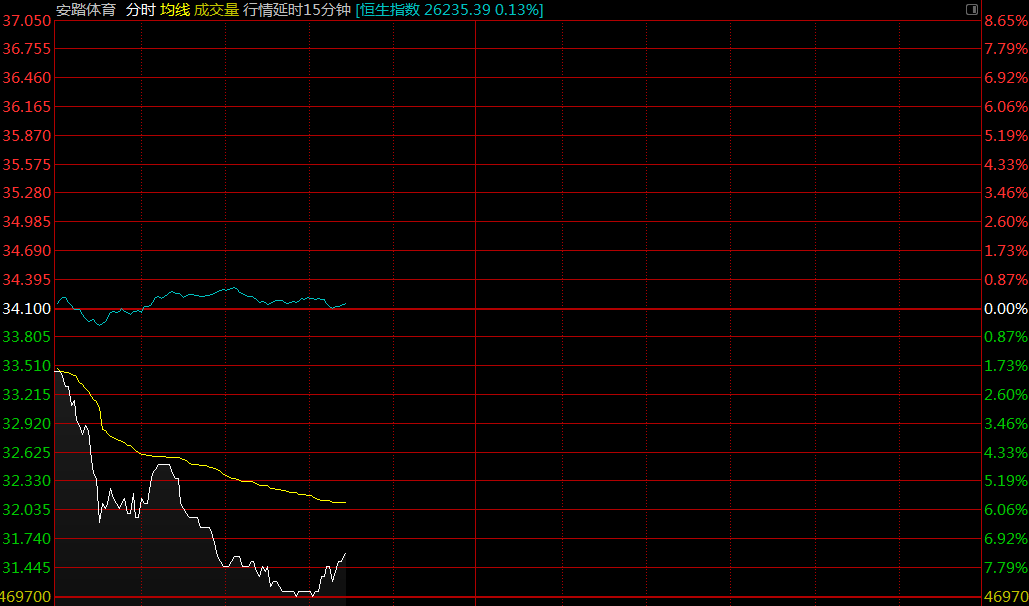 智通財經(jīng)APP獲悉,安踏體育(02020)盤中跌至31.2港元,創(chuàng)年內(nèi)新低,截至10時50分,跌8.5%,報價31.2港元,成交額2.28億。