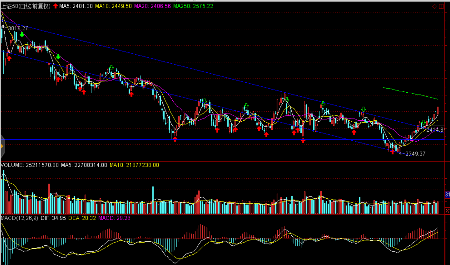 技術(shù)面:短期維持上行趨勢,上證50年線短期目標、滬綜指站穩(wěn)半年線后挑戰(zhàn)2700點一線、創(chuàng)業(yè)板短期壓力1350點一線。