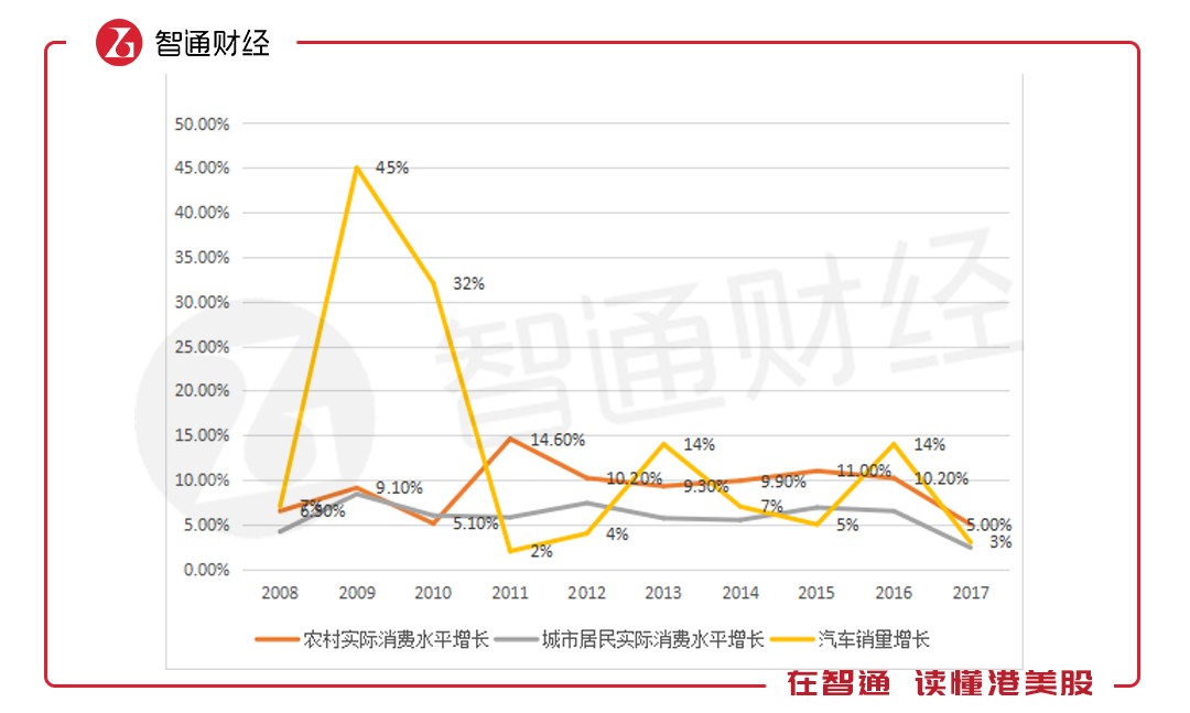 智通財(cái)經(jīng)APP了解到,2008年載客汽車保有量是3850.26萬(wàn)輛,2009年為4840.81萬(wàn)輛,同比增長(zhǎng)32%,而透過(guò)統(tǒng)計(jì)局官網(wǎng)得知,2008年城市每百戶家庭汽車擁有量為8.8輛,2009年為10.9輛,增長(zhǎng)了24%,2009年城市人口為64512人,增長(zhǎng)3.4%。城市的數(shù)據(jù)均低于行業(yè)的數(shù)據(jù),說(shuō)明農(nóng)村市場(chǎng)確實(shí)起到了作用。