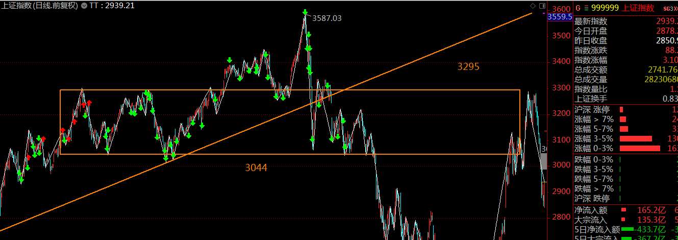 上證指數(shù)日K線看,缺口跌破了日K中樞的下軌,這里會(huì)對(duì)反彈產(chǎn)生較大壓力,關(guān)注3044點(diǎn)的反壓。