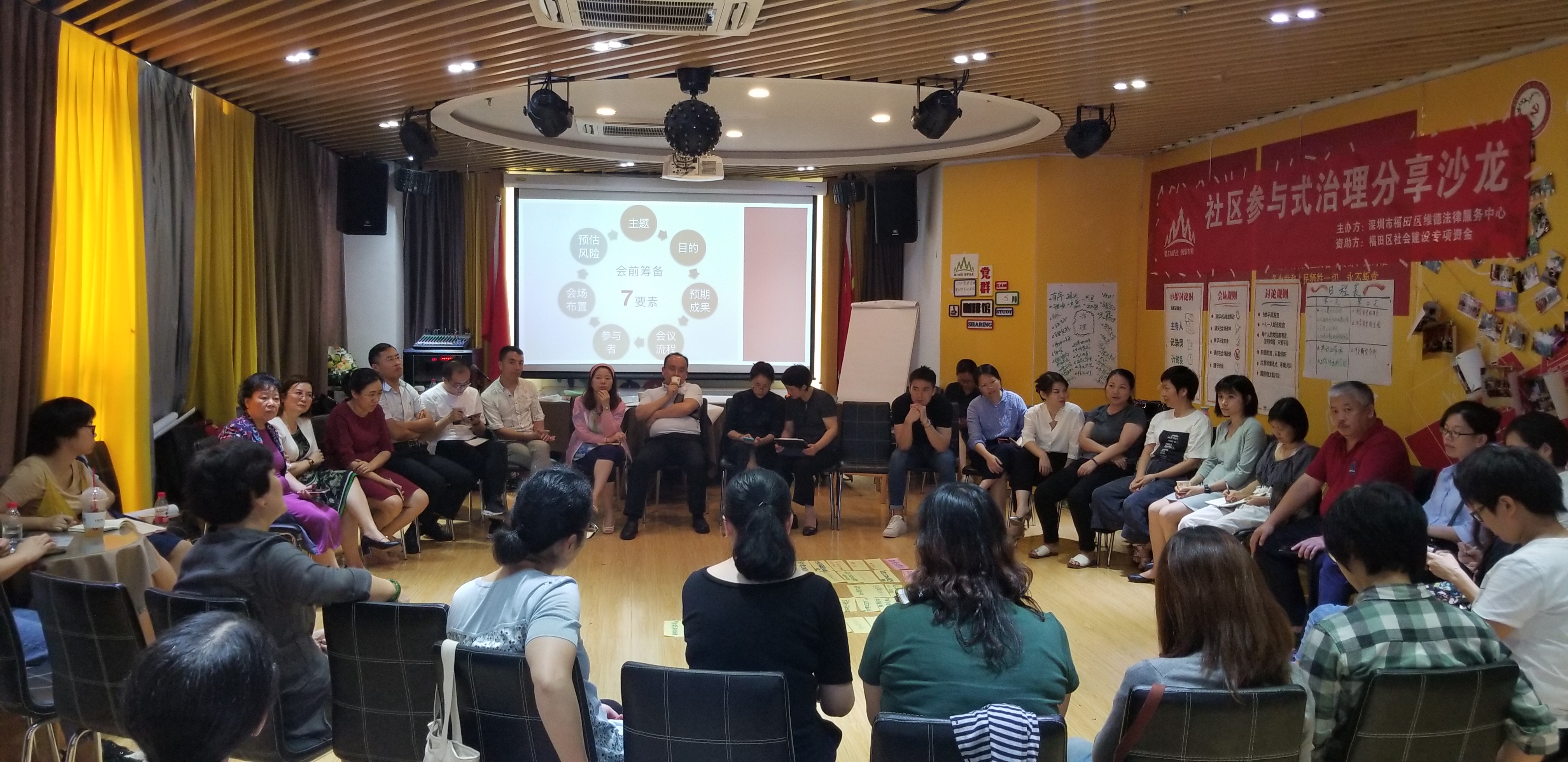 5月15-16日,由“福田區(qū)社會建設(shè)專項資金”資助的社區(qū)議事能力建設(shè)項目在福田區(qū)福田街道“白領(lǐng)e家”開展,來自福田區(qū)各個社區(qū)的人民調(diào)解員、社區(qū)法律顧問、社會工作者以及深圳市福田區(qū)維德法律服務(wù)中心邀請的志愿律師等80余人次參與了本次“社區(qū)參與式治理分享沙龍”。福田區(qū)街道黨委副書記、人大工委主任劉原鑣、深圳市福田區(qū)維德法律服務(wù)中心執(zhí)行主任李嚴出席了分享沙龍啟動儀式。