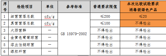 如果衛(wèi)生巾中的微生物指標(biāo)存在問題,會增加女性月經(jīng)期婦科炎癥的風(fēng)險,危害人體健康,我國《一次性使用衛(wèi)生用品衛(wèi)生標(biāo)準(zhǔn)》(GB15979-2002)中對致病微生物有嚴(yán)格要求。本次比較試驗(yàn)參照《綠色產(chǎn)品評價 紙和紙制品》(GB/T35613-2017)中微生物限值最嚴(yán)格的消毒級要求(見下表)考核樣品,結(jié)果顯示,35款樣品均可以達(dá)到消毒等級的要求。