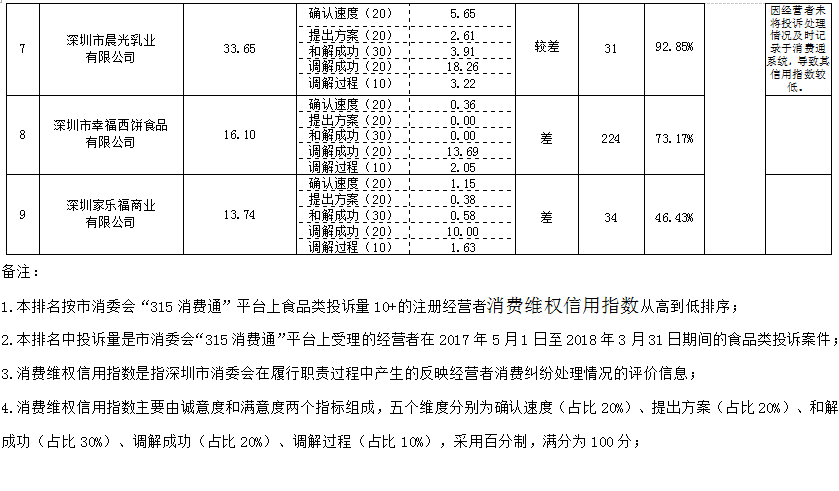 深圳市食品行業(yè)企業(yè)消費(fèi)投訴處理成功率排行榜為市消委會(huì)“315消費(fèi)通”平臺(tái)食品類投訴量前十的未注冊企業(yè)消費(fèi)投訴處理成功率排名,企業(yè)食品類消費(fèi)投訴處理成功率直接反映了企業(yè)對食品類消費(fèi)投訴處理的結(jié)果。
