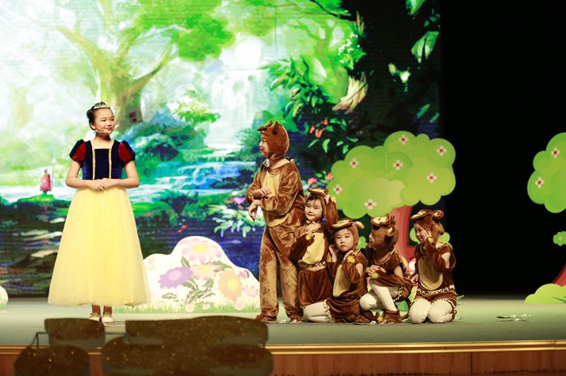 現(xiàn)場表演精彩紛呈,內(nèi)容積極向上,形式豐富多彩,表演生動逼真,充分展示出選手們奮發(fā)向上的精神風(fēng)貌,同時也展現(xiàn)了選手們的外語實際運用能力和自主創(chuàng)新精神?!度虬坠蔷贰ⅰ端廊恕?、《冰河世紀(jì)》、《獅子王》、《皇帝的新裝》、《白雪公主和七個小矮人》、《小紅帽》、《馬良的神筆》……一個個經(jīng)典的童話故事,惟妙惟肖的表演,生動的詮釋著故事里的每一個角色,把觀眾帶入一個個美麗的童話世界。