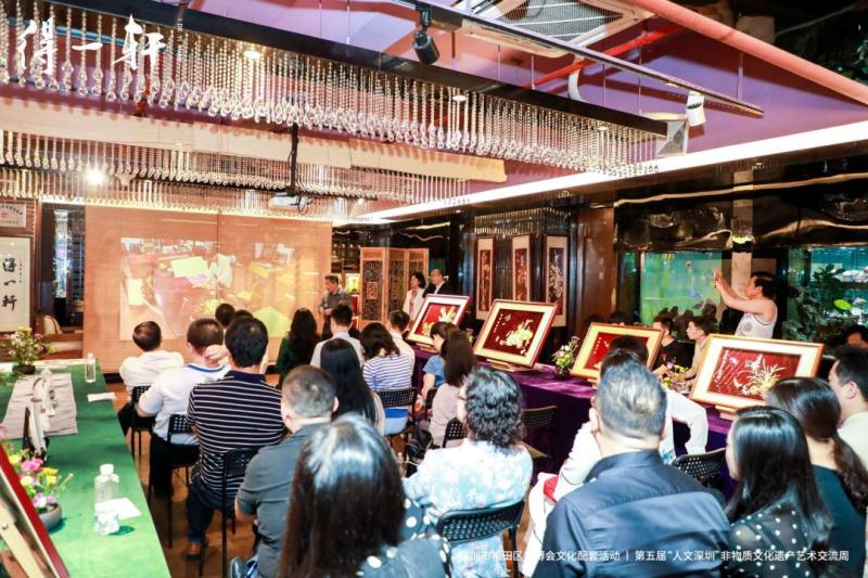 深圳市福田區(qū)企業(yè)發(fā)展服務中心主任馮向陽、深圳市福田區(qū)文化廣電旅游體育局副主任談建中、福田區(qū)蓮花總工會主席閆雪、國家級非物質(zhì)文化遺產(chǎn)項目潮州麥稈畫代表性傳承人方志偉、潮州市美術家協(xié)會名譽主席吳維潮、廣東省中級工藝美術師賴建國出席活動開幕儀式。