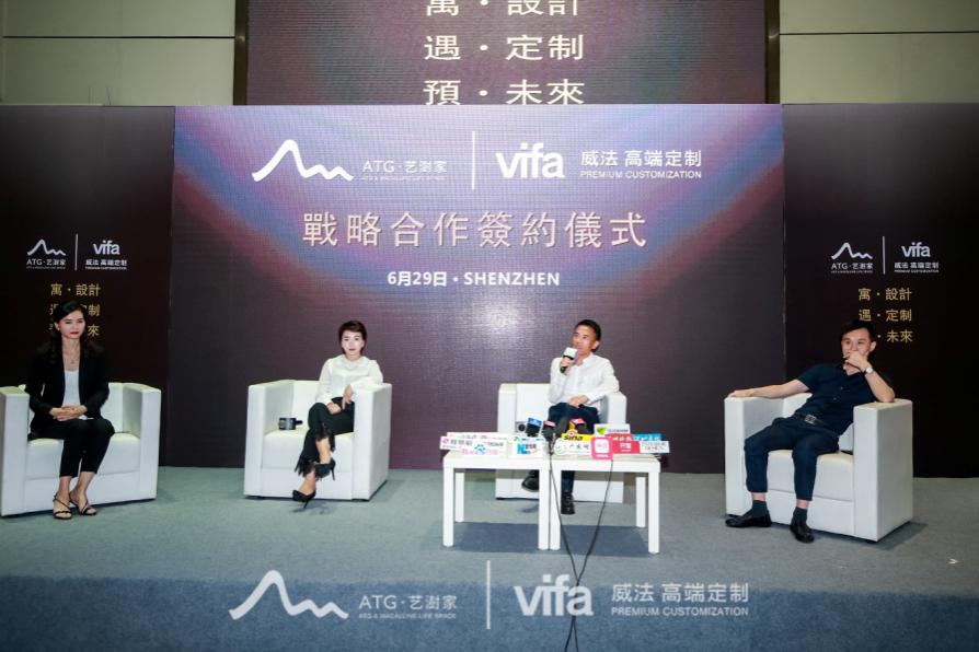 6月29日下午,ATG·藝澍家 & vifa威法戰(zhàn)略合作簽約儀式在紅星美凱龍深圳香蜜湖商場舉行,vifa威法董事長楊煉、總經(jīng)理王超及威法高端定制核心區(qū)域代理商們悉數(shù)到場,與ATG·藝澍家CEO張富麗、來自ATG亞太國際的設(shè)計師團隊等就跨界合作議題展開深入的交流溝通。現(xiàn)場火花碰撞,在高端家裝市場領(lǐng)域深耕多年的雙方領(lǐng)導(dǎo)分享了對“高奢住宅定制”的理解,坦言行業(yè)痛點,剖析行業(yè)趨勢,并就當前高奢定制市場發(fā)展的現(xiàn)狀以及問題展開全面探討。