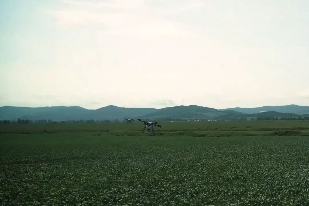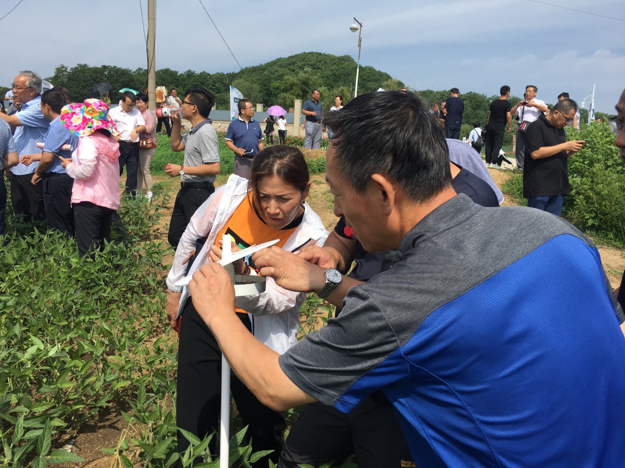 開班儀式前,參會領(lǐng)導(dǎo)、專家及各省市參會代表現(xiàn)場觀摩位于敦化市鴻發(fā)現(xiàn)代生態(tài)農(nóng)場的全國生物食誘劑防控大豆食心蟲技術(shù)試驗示范區(qū),在示范區(qū)現(xiàn)場觀摩無人機(jī)噴灑生物食誘劑。