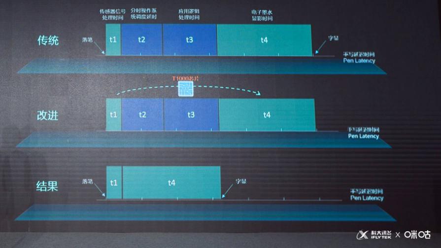 為了實(shí)現(xiàn)這個(gè)突破,智能本與E Ink原廠通力合作、聯(lián)合調(diào)優(yōu),在業(yè)界首次實(shí)現(xiàn)了墨水屏手寫(xiě)處理芯片化(T1000芯片),直接將寫(xiě)顯延遲中的軟件處理部分通過(guò)芯片實(shí)現(xiàn),大大的縮短了墨水屏的寫(xiě)顯延遲。當(dāng)前,在咪咕訊飛智能本青春版中,寫(xiě)顯延遲僅30毫秒左右。在用戶直接的主觀體驗(yàn)測(cè)試中,已經(jīng)做到了“幾乎無(wú)延遲感”、“像真紙一樣的書(shū)寫(xiě)速度”。