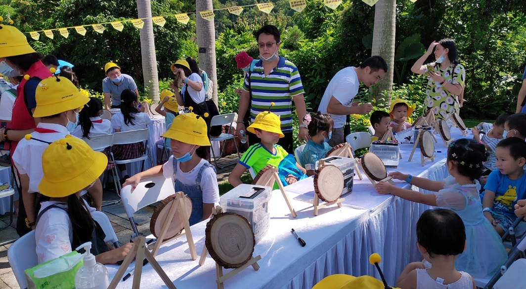 在自然課堂,分為科普展覽區(qū)、繪畫活動(dòng)區(qū)和蜂產(chǎn)品體驗(yàn)區(qū),孩子們戴著黃色的卡通帽子,像一只只勤勞的小蜜蜂忙碌地參與各項(xiàng)活動(dòng)。在科普展板前,他們認(rèn)真記錄蜜蜂的基本知識(shí)、品質(zhì)精神,了解蜜蜂與人類的關(guān)系、保護(hù)生物多樣性的重要性,家長(zhǎng)們結(jié)合展板耐心講解《深圳經(jīng)濟(jì)特區(qū)科學(xué)技術(shù)普及條例》、全國(guó)科普日、深圳科普月等知識(shí)。