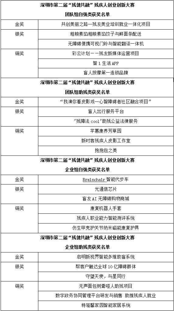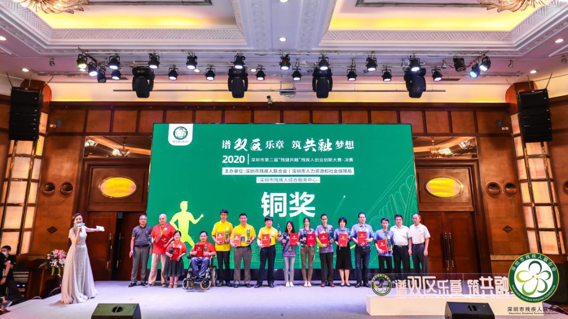 見(jiàn)圳客戶(hù)端·深圳新聞網(wǎng)2020年9月30日訊(記者 張俊達(dá))昨天,由深圳市殘疾人聯(lián)合會(huì)與深圳市人力資源和社會(huì)保障局共同主辦,深圳市殘疾人綜合服務(wù)中心承辦,各區(qū)(新區(qū))殘疾人聯(lián)合會(huì)、各區(qū)(新區(qū))殘疾人就業(yè)服務(wù)機(jī)構(gòu)聯(lián)合協(xié)辦的深圳市第二屆“殘健共融”殘疾人創(chuàng)業(yè)創(chuàng)新大賽決賽暨頒獎(jiǎng)典禮圓滿(mǎn)落幕。大賽共評(píng)選出4個(gè)金獎(jiǎng)、8個(gè)銀獎(jiǎng)、12個(gè)銅獎(jiǎng)及若干個(gè)優(yōu)勝獎(jiǎng)?,F(xiàn)場(chǎng)有來(lái)自殘聯(lián)單位、企業(yè)、高校、社會(huì)組織等代表100余人參加本次活動(dòng)。