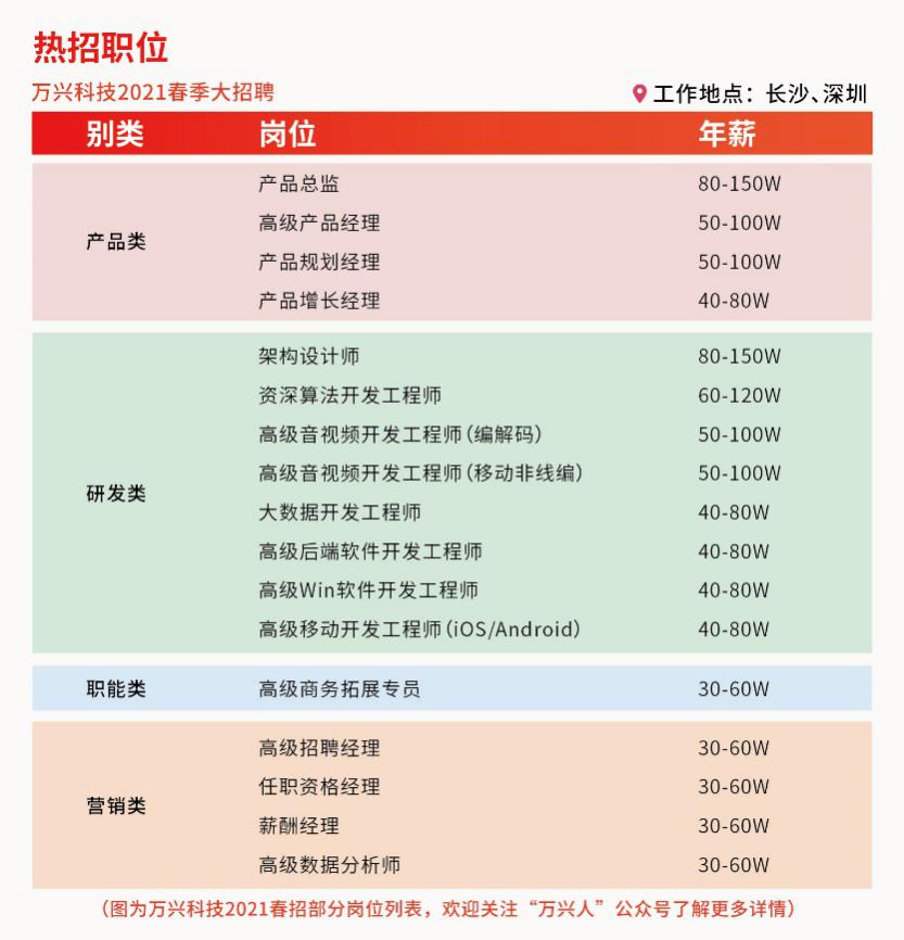 見圳客戶端·深圳新聞網(wǎng)2021年1月25日訊 繼去年逆勢擴(kuò)招成為招聘中的黑馬企業(yè),數(shù)字創(chuàng)意軟件龍頭萬興科技(300624.SZ)2021又有大動作!剛開年,萬興科技便緊鑼密鼓地開啟大規(guī)模招聘,面向業(yè)界招募200余位高職級精英人才,部分崗位最高年薪可達(dá)百萬,整體招聘規(guī)模、層次遠(yuǎn)超以往。