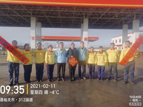 甘肅嘉峪關,加油員們收到能鏈送來的保溫杯和“福”字