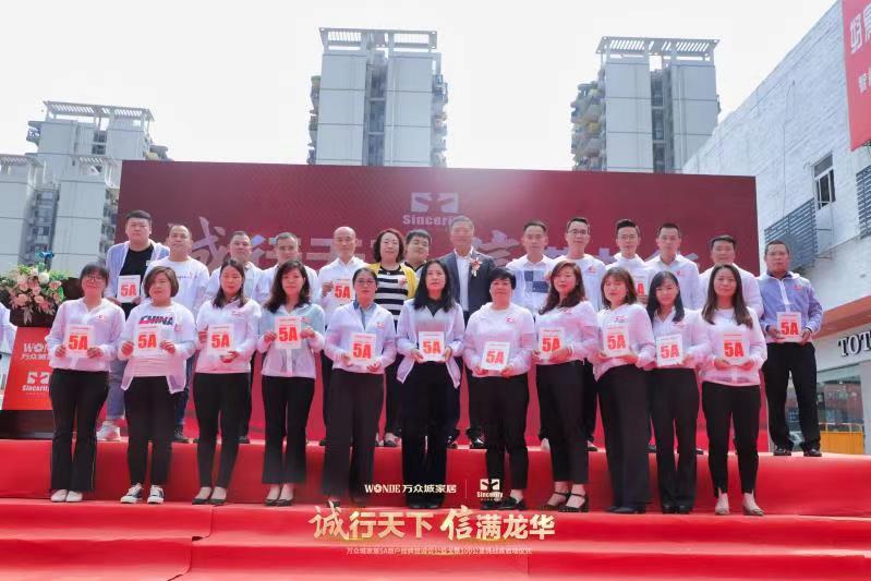 儀式上,誠商會創(chuàng)會會長、萬眾城集團董事長鐘華致歡迎辭,他說,萬眾城集團自2009年開始做誠信建設(shè),創(chuàng)立了“誠信基金”“誠信沙龍”“5A級誠信商戶評選”三板斧,將商戶有效投訴從十二年前的91起,商戶自覺誠信經(jīng)營,往后每年未超過5起。萬眾城既是誠信建設(shè)者,也是受益者,投訴率和理賠率逐年下降,商家營業(yè)額逐年上升。經(jīng)過嚴(yán)格的篩選和評審,萬眾城家居評出了2020年度5A商戶共346戶,并在當(dāng)天的儀式上給20名5A商戶代表授牌。