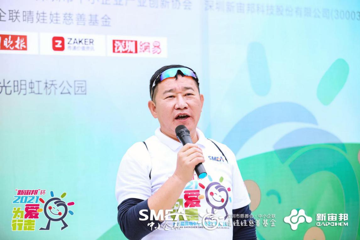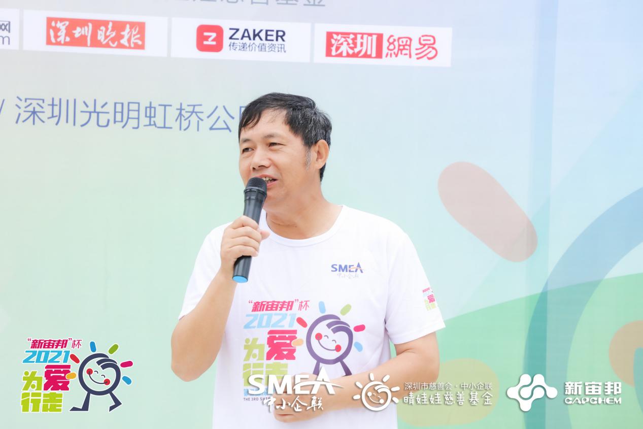 深圳中小企聯(lián)會長、深圳市杰科電子有限公司董事長黃榮添為開幕式致辭。他表示:“感謝新宙邦對本次慈善公益徒步活動做出的貢獻,以及今天參加此次活動的愛心企業(yè)家、愛心人士們的大力支持,我代表深圳中小企聯(lián)感謝大家的參與,今后也希望通過各類活動讓更多愛心人士關(guān)注我們“晴娃娃”,給更多的孩子送去關(guān)愛,能讓他們綻放開心的笑容?!?/p>
