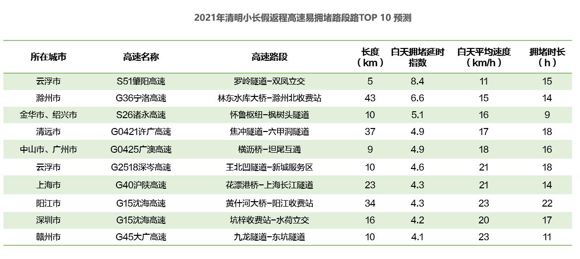 全國(guó)高速擁堵預(yù)測(cè):4月3日為出程高峰,4月5日為返程高峰
