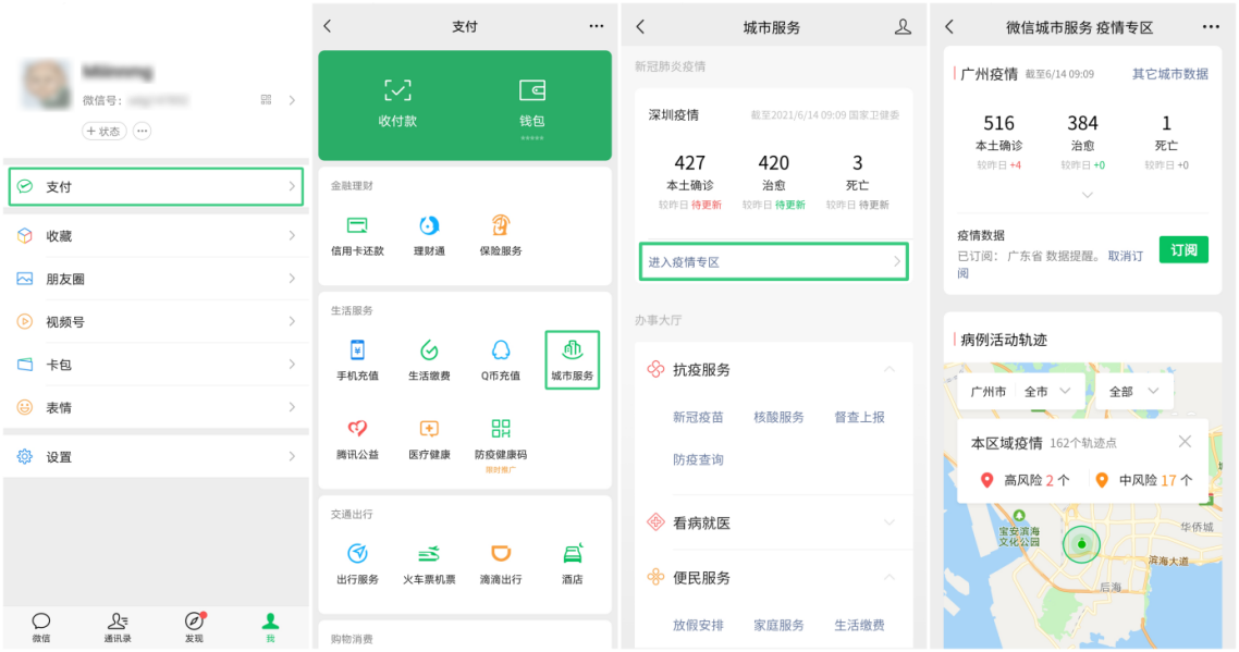讀特客戶端·深圳新聞網(wǎng)2021年6月16日訊 (記者 田志強)端午期間,為減少疫情傳播風(fēng)險,廣東市民紛紛響應(yīng)號召實行就地過節(jié),落實非必要不出省的相關(guān)要求。為進一步助力廣東及全國人民抗疫,為市民提供準(zhǔn)確疫情資訊及抗疫服務(wù),近日,微信更新城市服務(wù)疫情專區(qū),支持查看疫情數(shù)據(jù)、病例活動軌跡、疫情資訊以及接入抗疫服務(wù)。全國用戶打開“我-支付-城市服務(wù)-疫情專區(qū)”,即可快速觸達(dá)各類疫情相關(guān)服務(wù)。