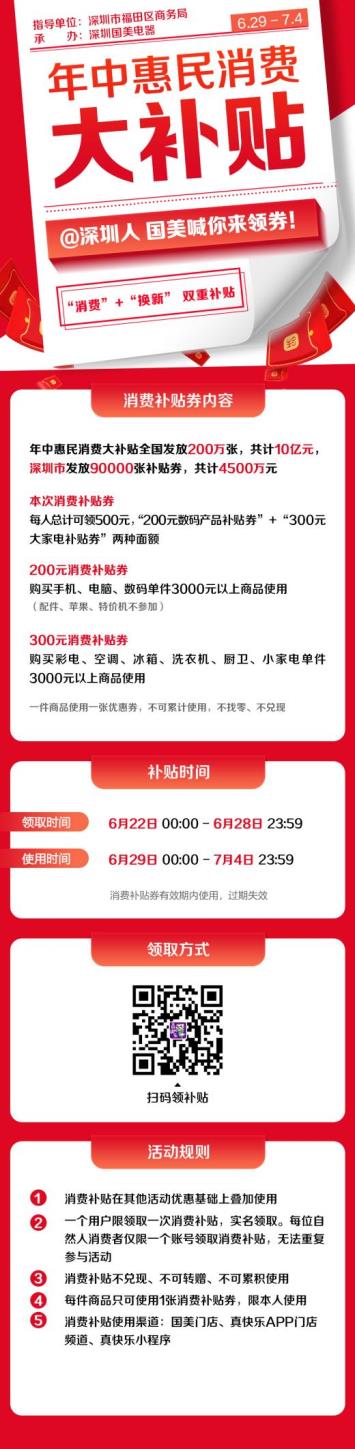 讀特客戶(hù)端·深圳新聞網(wǎng)2021年6月25日訊 (記者 常軍平)好消息!為提振消費(fèi)信心,積極推動(dòng)“拉內(nèi)需,促消費(fèi)”的政府惠民政策落地,加速經(jīng)濟(jì)發(fā)展。作為國(guó)內(nèi)零售巨頭的國(guó)美積極響應(yīng)號(hào)召,勇?lián)髽I(yè)責(zé)任,于6月21日-7月4日,攜全國(guó)多地政府部門(mén)全新開(kāi)啟“年中惠民消費(fèi)大補(bǔ)貼”活動(dòng),為促進(jìn)各地經(jīng)濟(jì)發(fā)展貢獻(xiàn)力量。