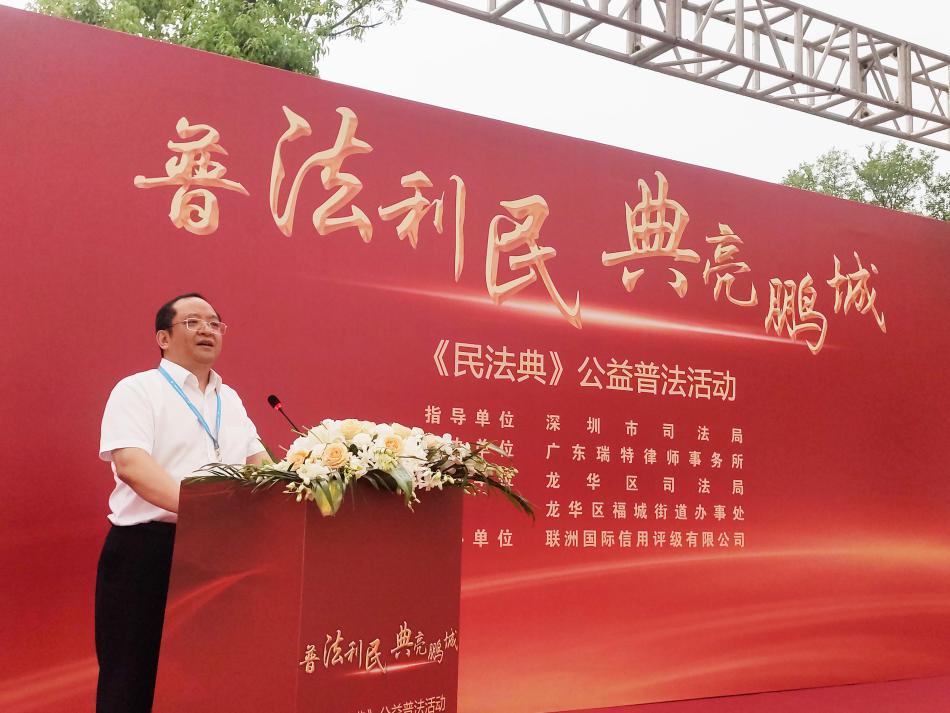 讀特客戶端·深圳新聞網(wǎng)2021年7月29日訊 (記者 常軍平) 昨日,由深圳市司法局指導(dǎo)、廣東瑞特律師事務(wù)所主辦、龍華區(qū)司法局、龍華區(qū)福城街道辦事處、深圳潮青會(huì)協(xié)辦、聯(lián)洲國(guó)際信用評(píng)級(jí)有限公司承辦的“普法利民,典亮鵬城”《民法典》公益普法活動(dòng)在龍華舉行。