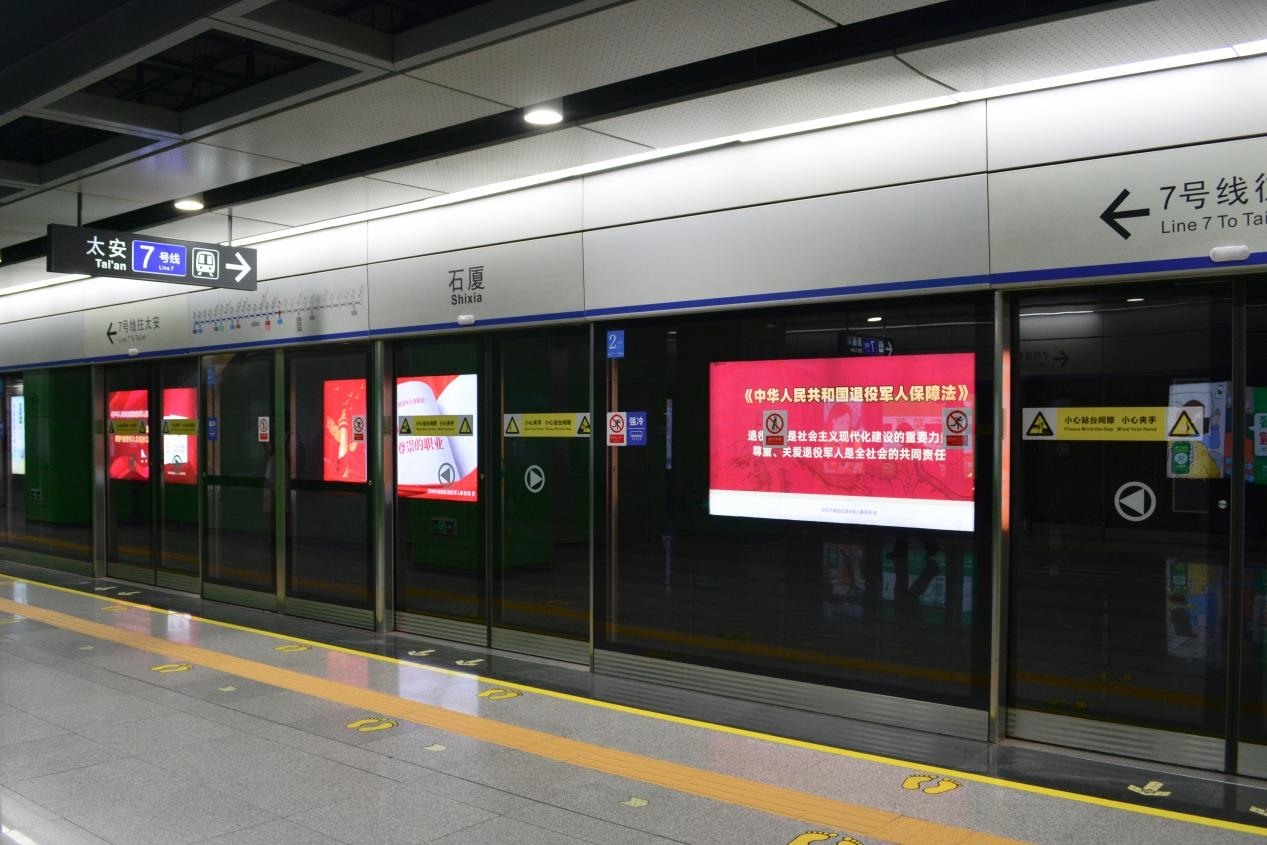 在地鐵石廈站,站廳包柱上的“維護(hù)退役軍人合法權(quán)益”、“讓軍人成為全社會(huì)尊崇的職業(yè)”等標(biāo)語映入眼簾,為普法宣傳增添了濃厚氛圍。在安檢口處,還設(shè)立了解讀《中華人民共和國(guó)退役軍人保障法》墻貼,精心設(shè)計(jì)的公益宣傳吸引了很多市民駐足觀看。